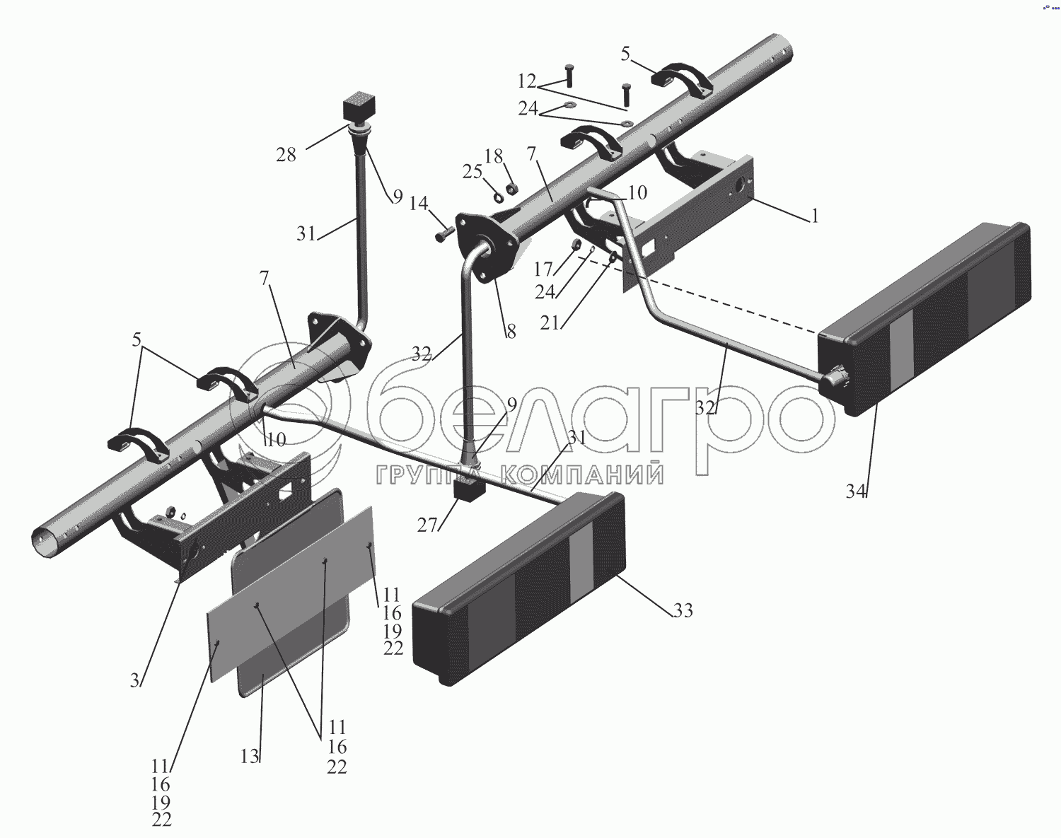 Каталог запасных частей к технике: МАЗ-630333. Установка задних фонарей 6303-3700009