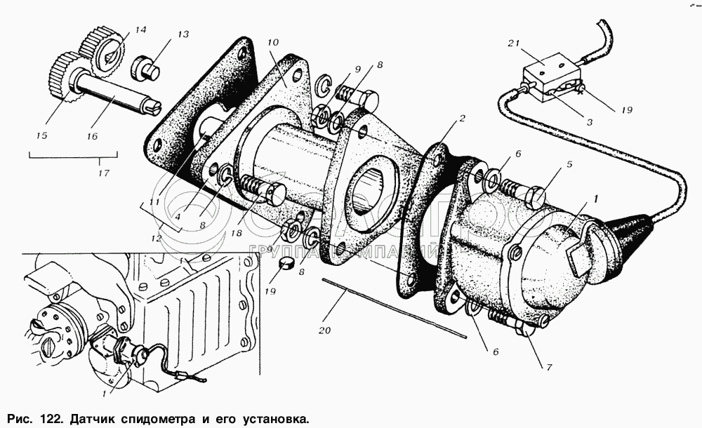 Каталог запасных частей к технике: МАЗ-6303. Датчик спидометра и его установка