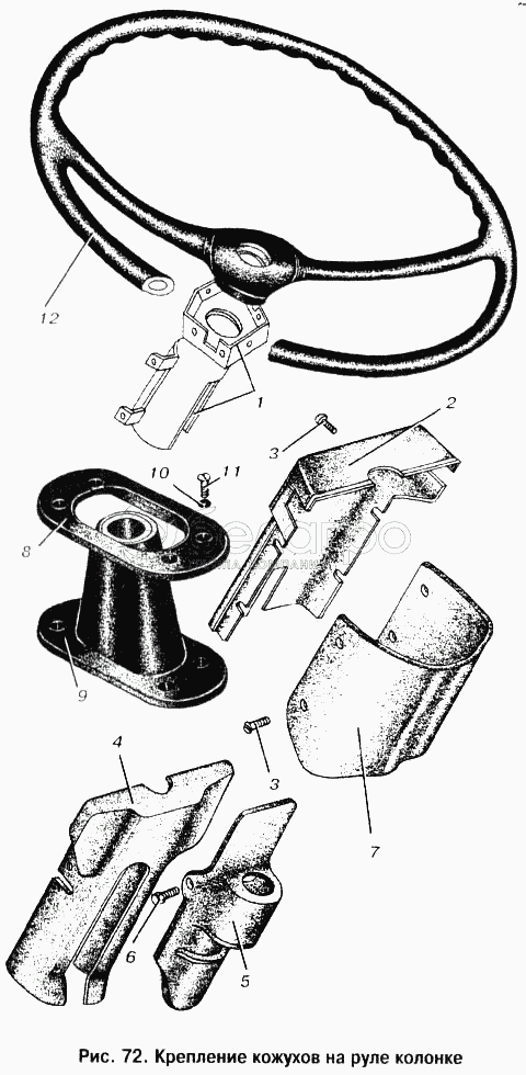 Каталог запасных частей к технике: МАЗ-6303. Крепление кожухов на рулевой колонке