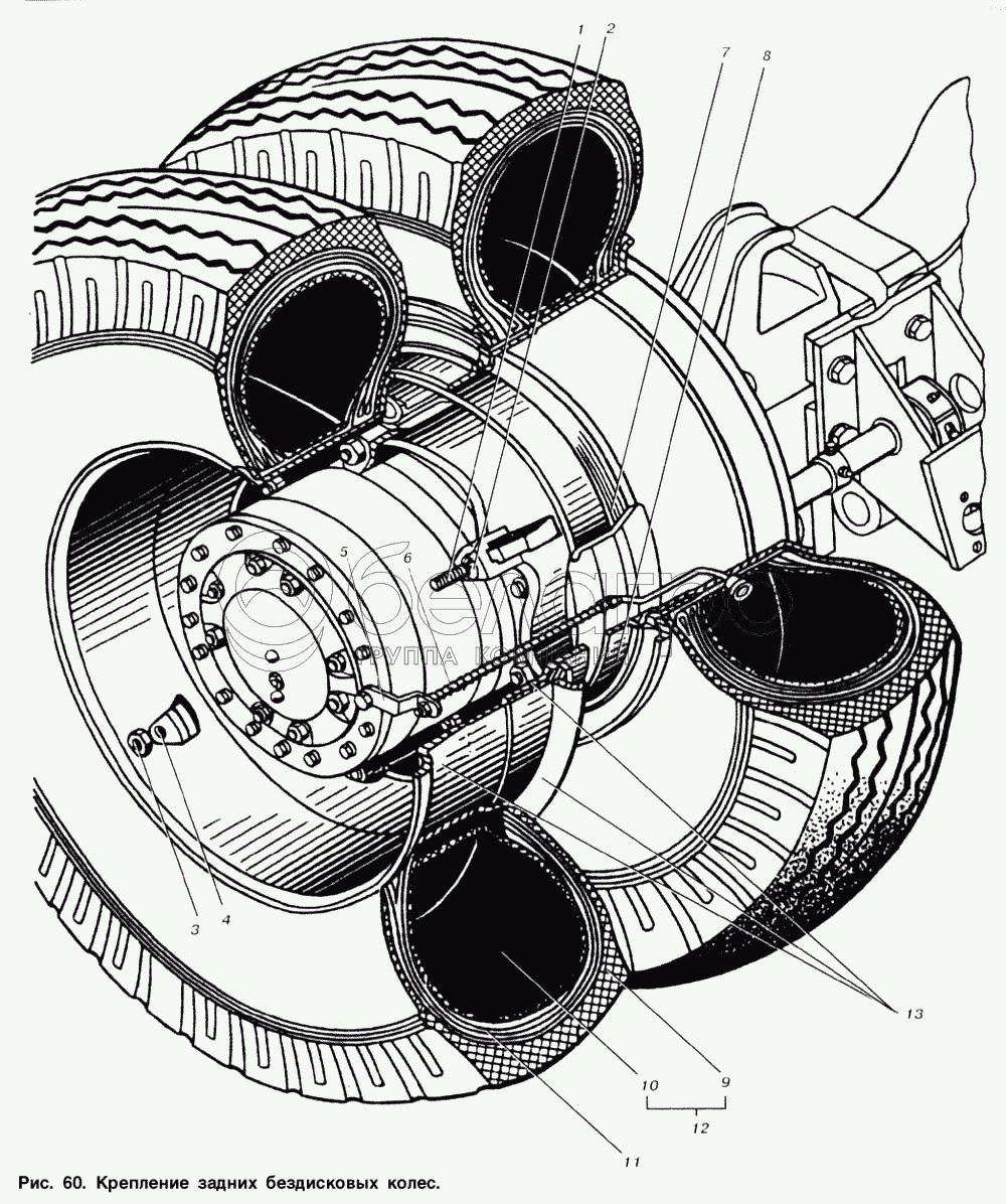 Каталог запасных частей к технике: МАЗ-6303. Крепление задних бездисковых колес