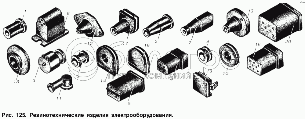 Каталог запасных частей к технике: МАЗ-6303. Резинотехнические изделия электрооборудования
