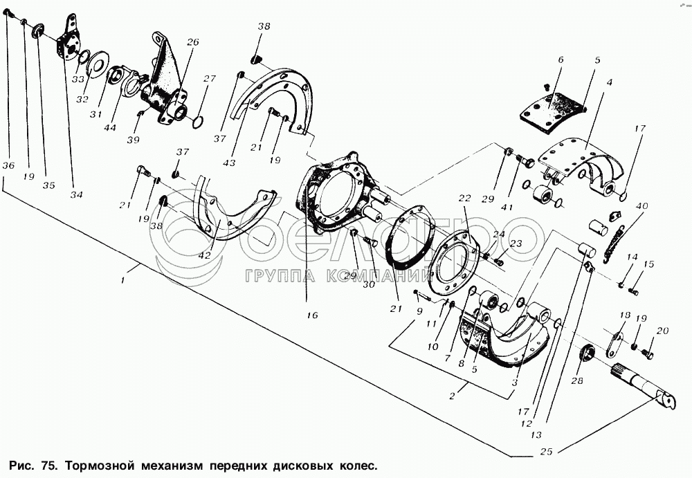 Каталог запасных частей к технике: МАЗ-6303. Тормозной механизм передних дисковых колес