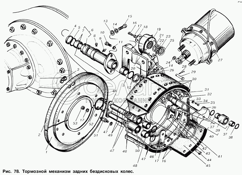 Каталог запасных частей к технике: МАЗ-6303. Тормозной механизм задних бездисковых колес