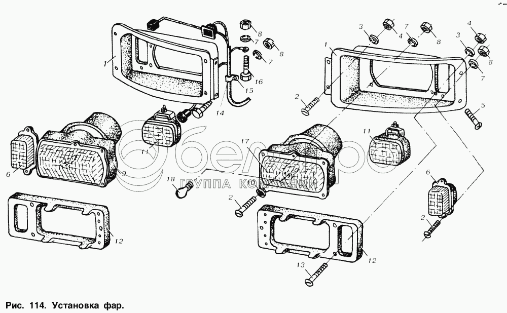Каталог запасных частей к технике: МАЗ-6303. Установка фар