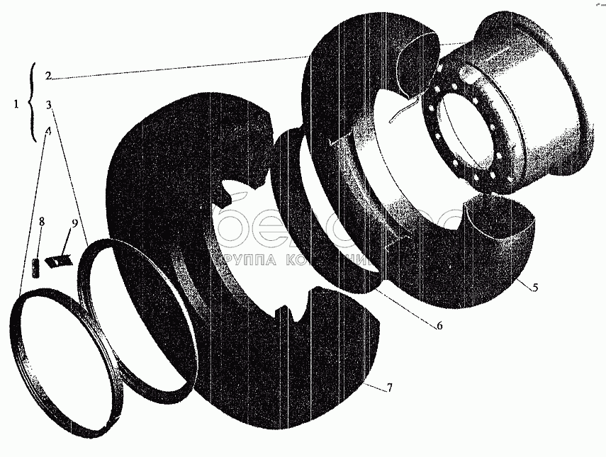Каталог запасных частей к технике: МАЗ-6303 (2005). Колесо, камера и покрышка