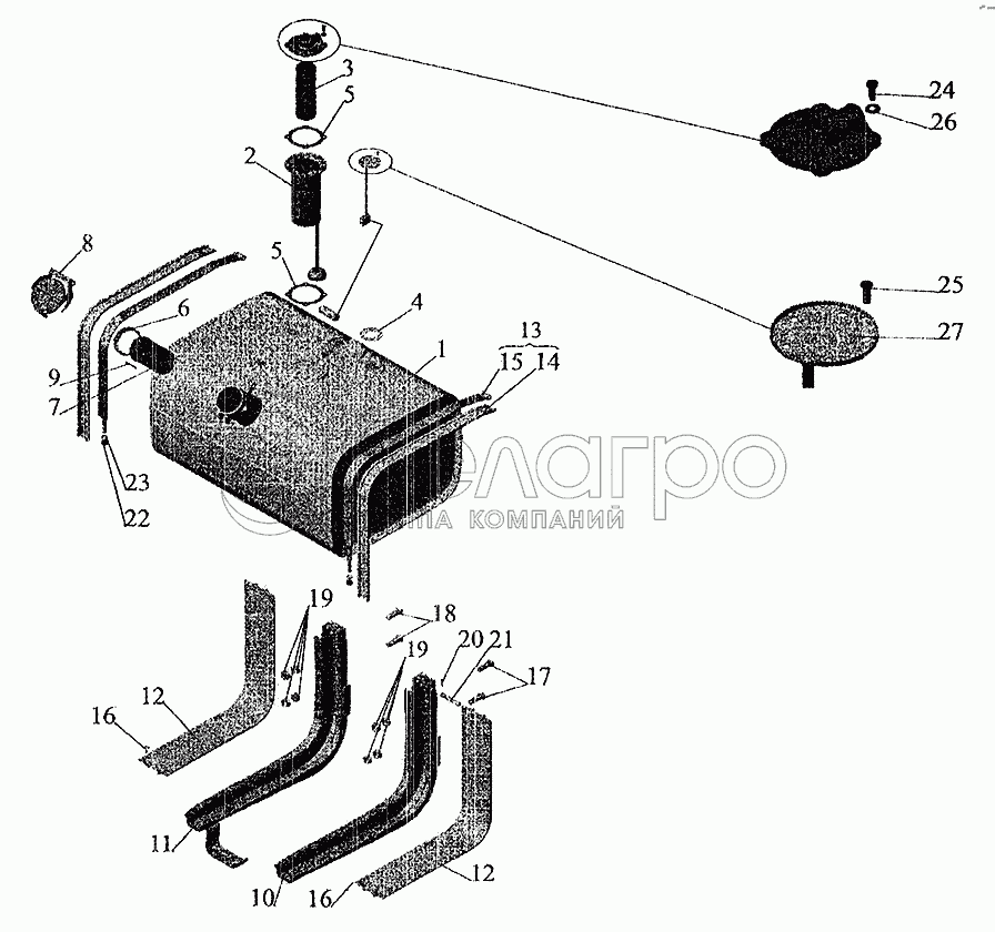 Каталог запасных частей к технике: МАЗ-6303 (2005). Крепление топливного бака