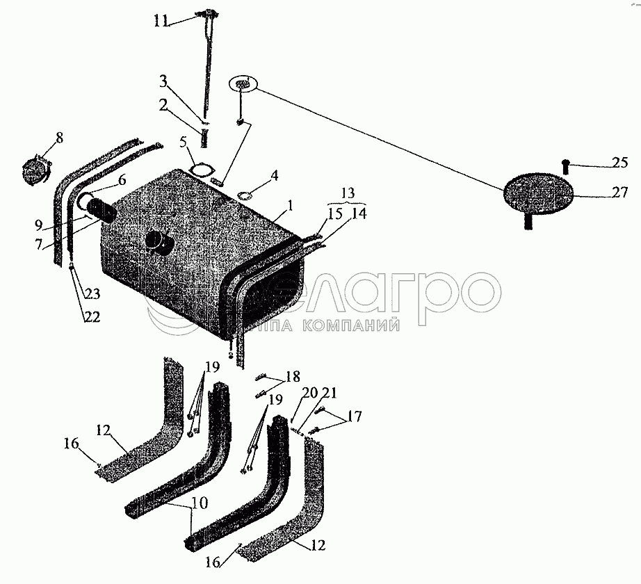 Каталог запасных частей к технике: МАЗ-6303 (2005). Крепление топливного бака (350 литров)