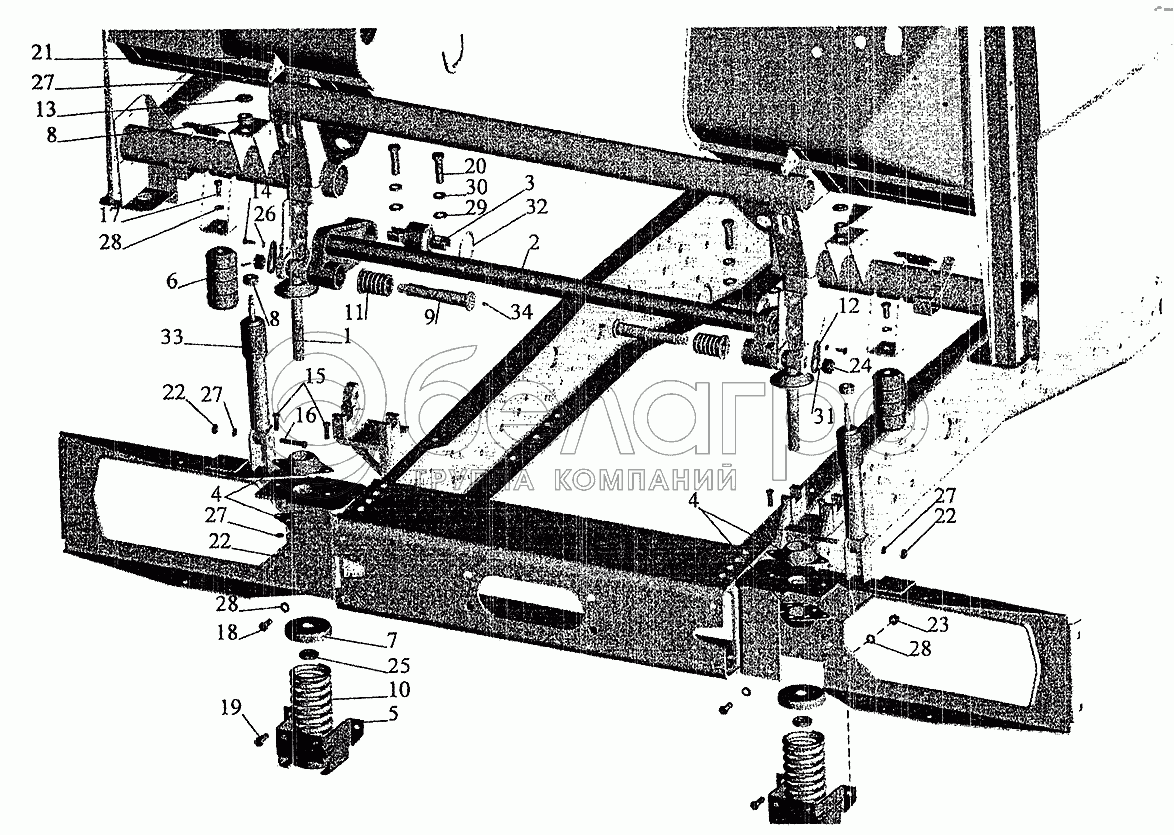 Каталог запасных частей к технике: МАЗ-6303 (2005). Переднее подрессоривание большой кабины