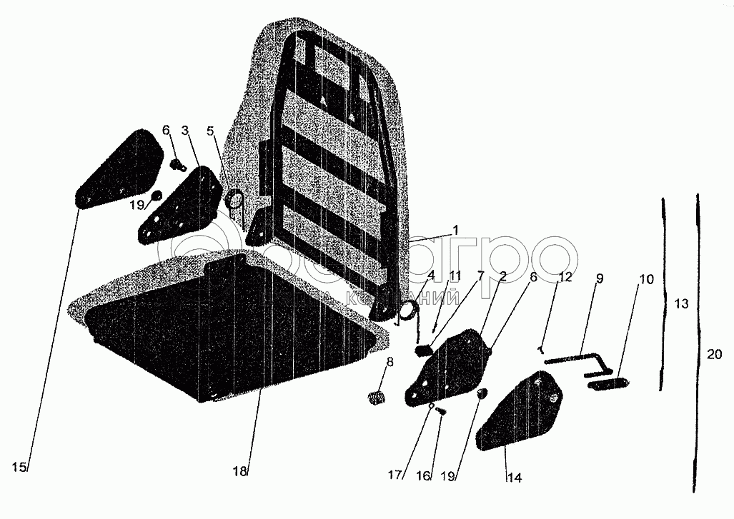 Каталог запасных частей к технике: МАЗ-6303 (2005). Подушка и спинка сидения