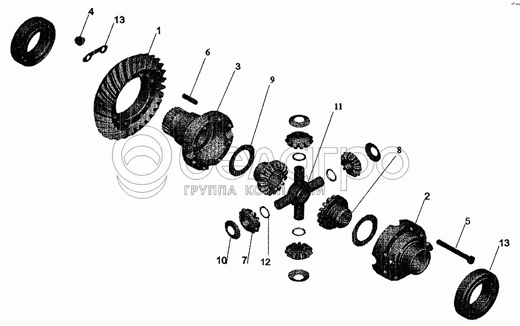 Каталог запасных частей к технике: МАЗ-6303 (2005). Редуктор среднего моста. Дифференциал