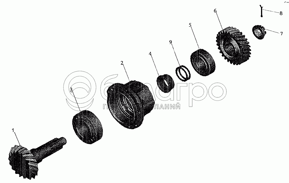 Каталог запасных частей к технике: МАЗ-6303 (2005). Редуктор среднего моста. Шестерня ведущая