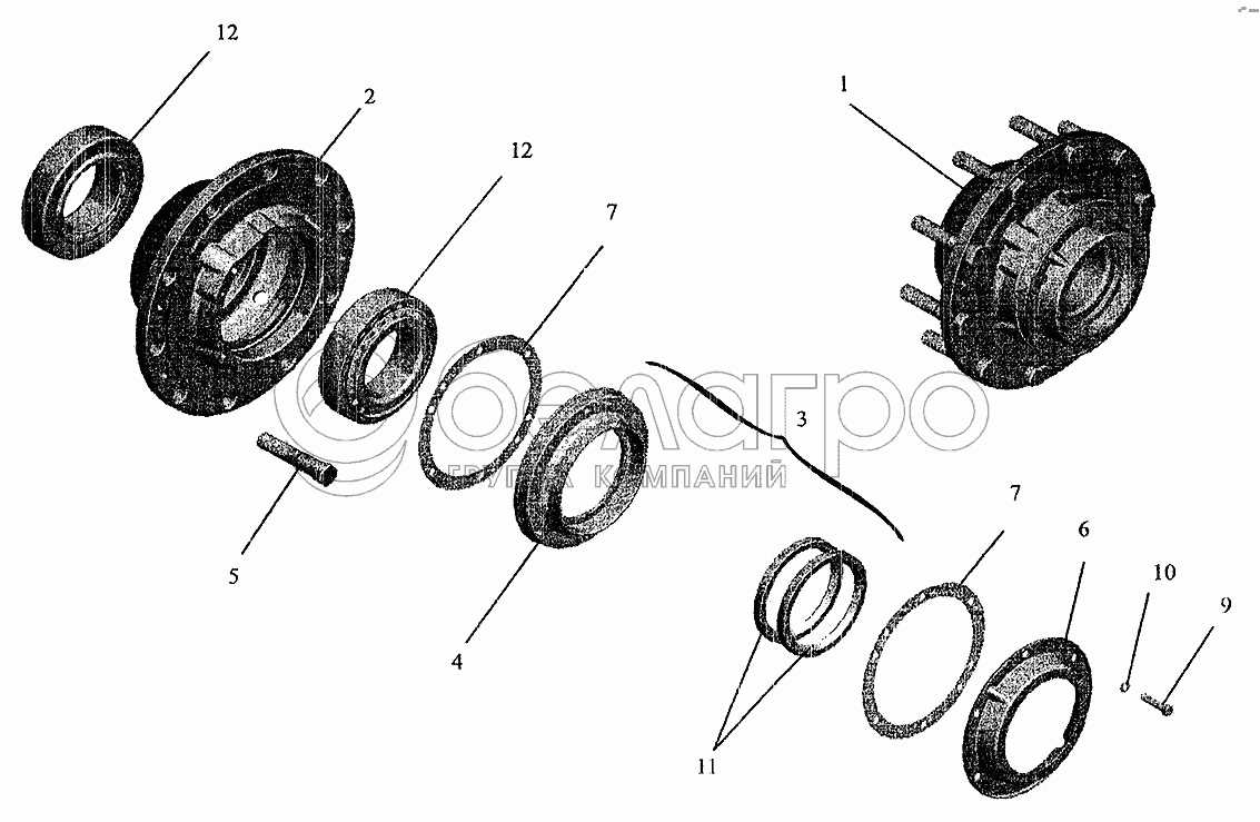 Каталог запасных частей к технике: МАЗ-6303 (2005). Ступица моста