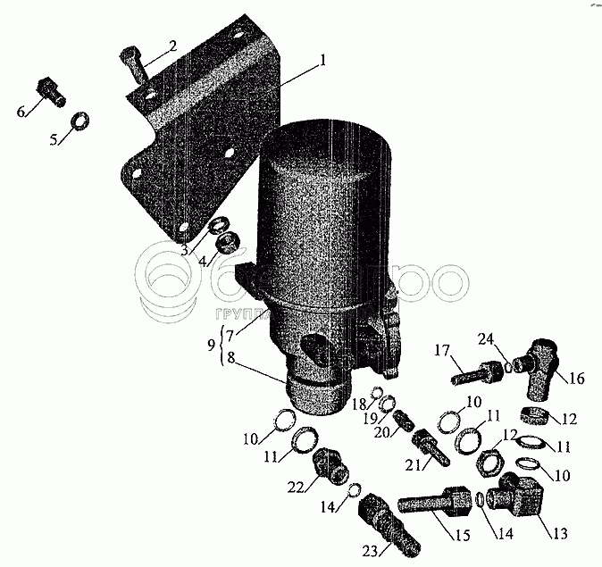 Каталог запасных частей к технике: МАЗ-6303 (2005). Установка осушителя воздуха и присоединительной арматуры