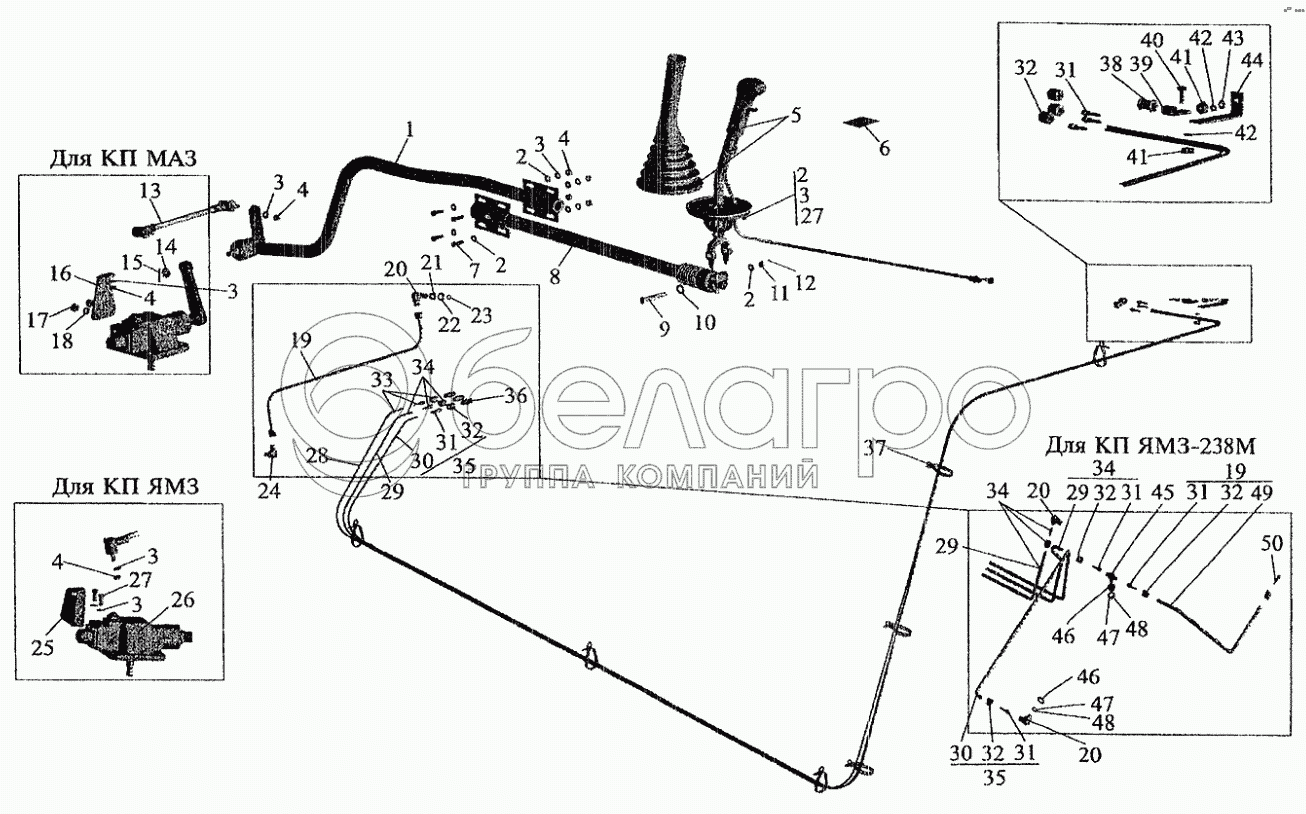 Каталог запасных частей к технике: МАЗ-6303 (2005). Установка привода управления коробкой передач
