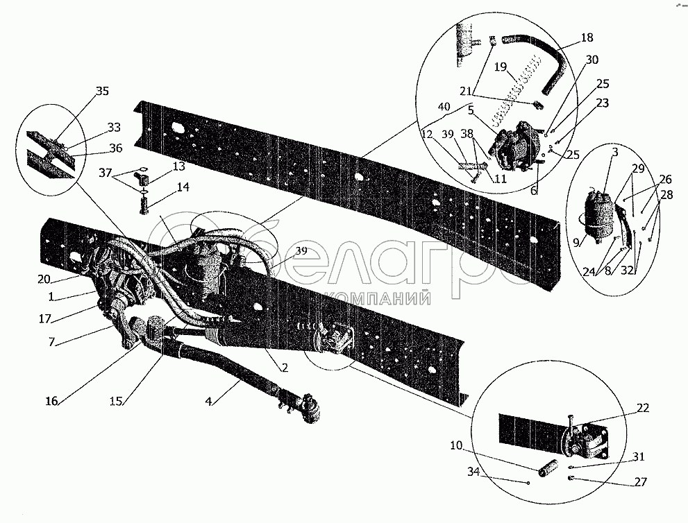 Каталог запасных частей к технике: МАЗ-6303 (2005). Установка рулевого управления