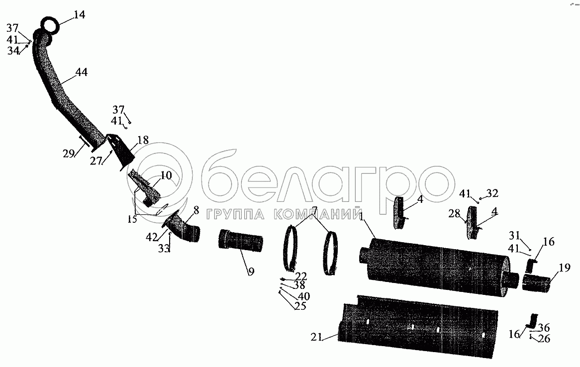 Каталог запасных частей к технике: МАЗ-6303 (2005). Установка системы выпуска МАЗ-533702