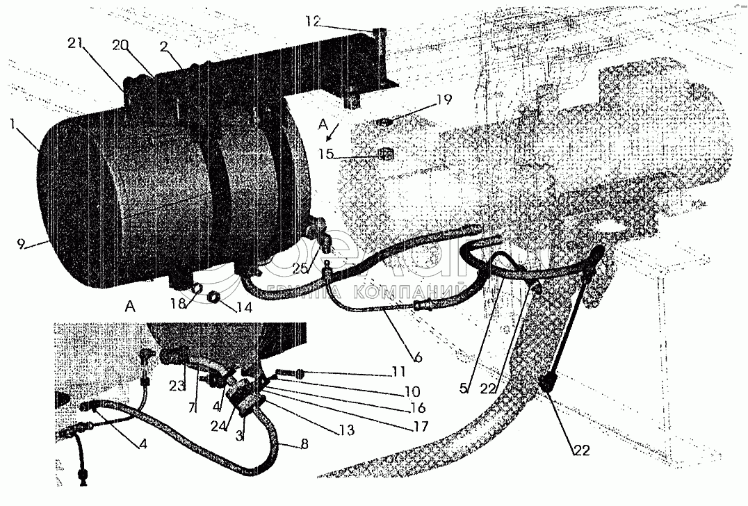 Каталог запасных частей к технике: МАЗ-6303 (2005). Установка топливопроводов подогревателя