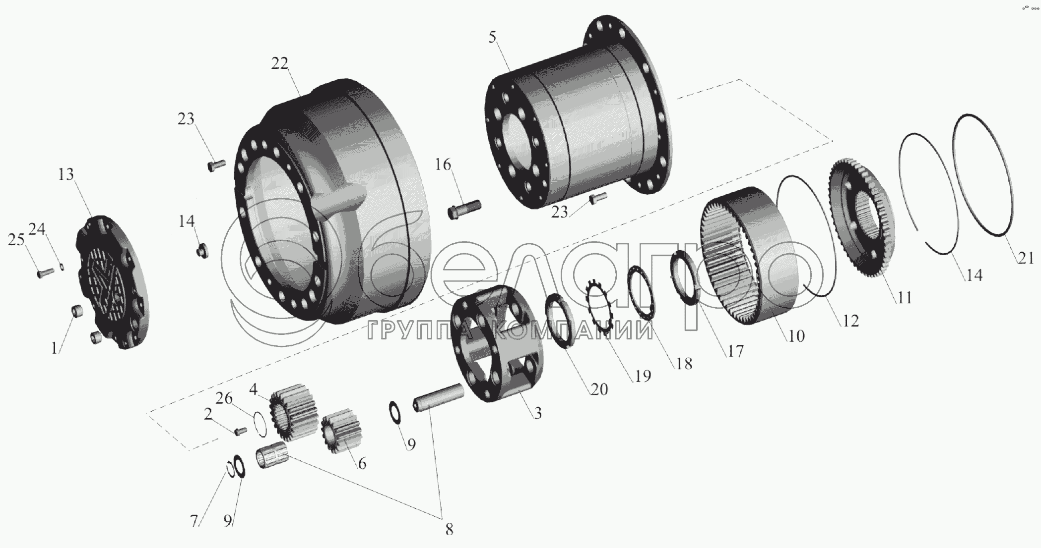 Каталог запасных частей к технике: МАЗ-6303A3, 6303A5. Колесный редуктор заднего моста