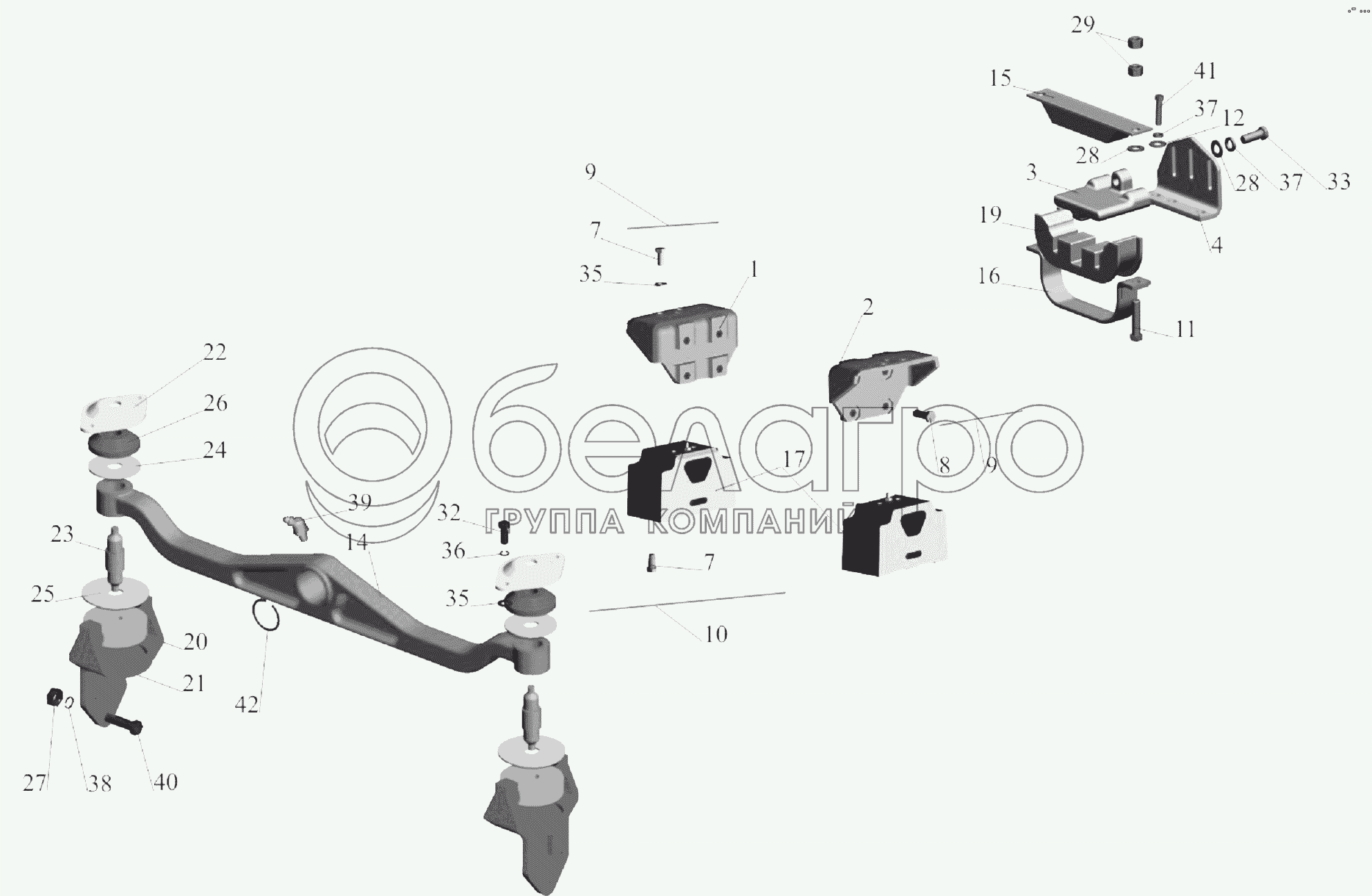 Каталог запасных частей к технике: МАЗ-6303A3, 6303A5. Крепление двигателя