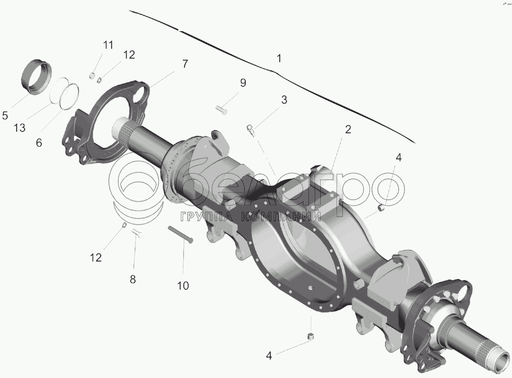 Каталог запасных частей к технике: МАЗ-6303A3, 6303A5. Мост средний. Картер моста