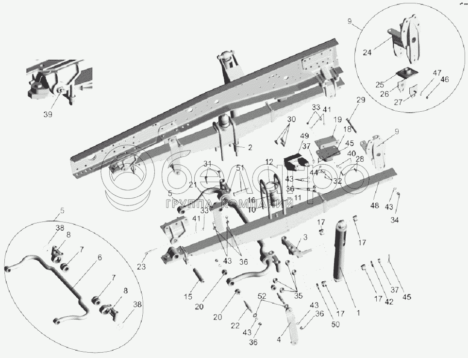 Каталог запасных частей к технике: МАЗ-6303A3, 6303A5. Подвеска передняя 551605-2900001