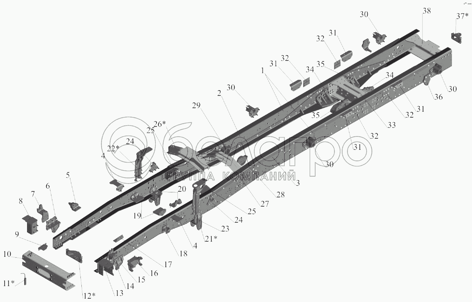 Каталог запасных частей к технике: МАЗ-6303A3, 6303A5. Рамы