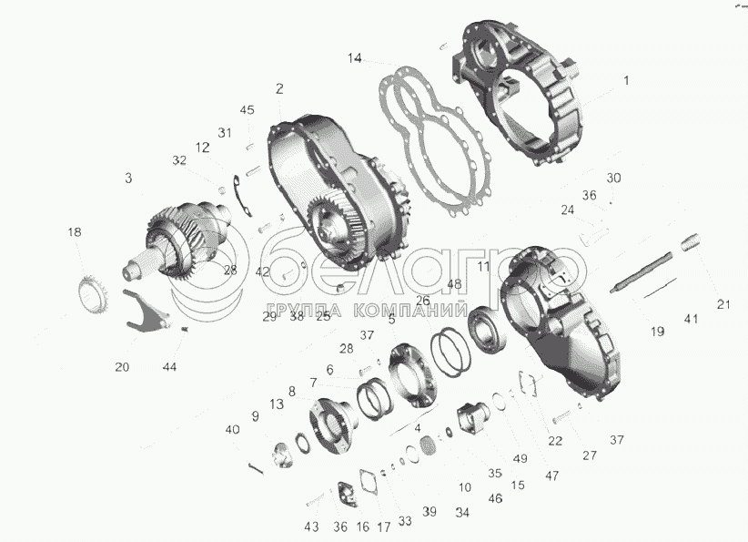 Каталог запасных частей к технике: МАЗ-6303A3, 6303A5. Редуктор среднего моста