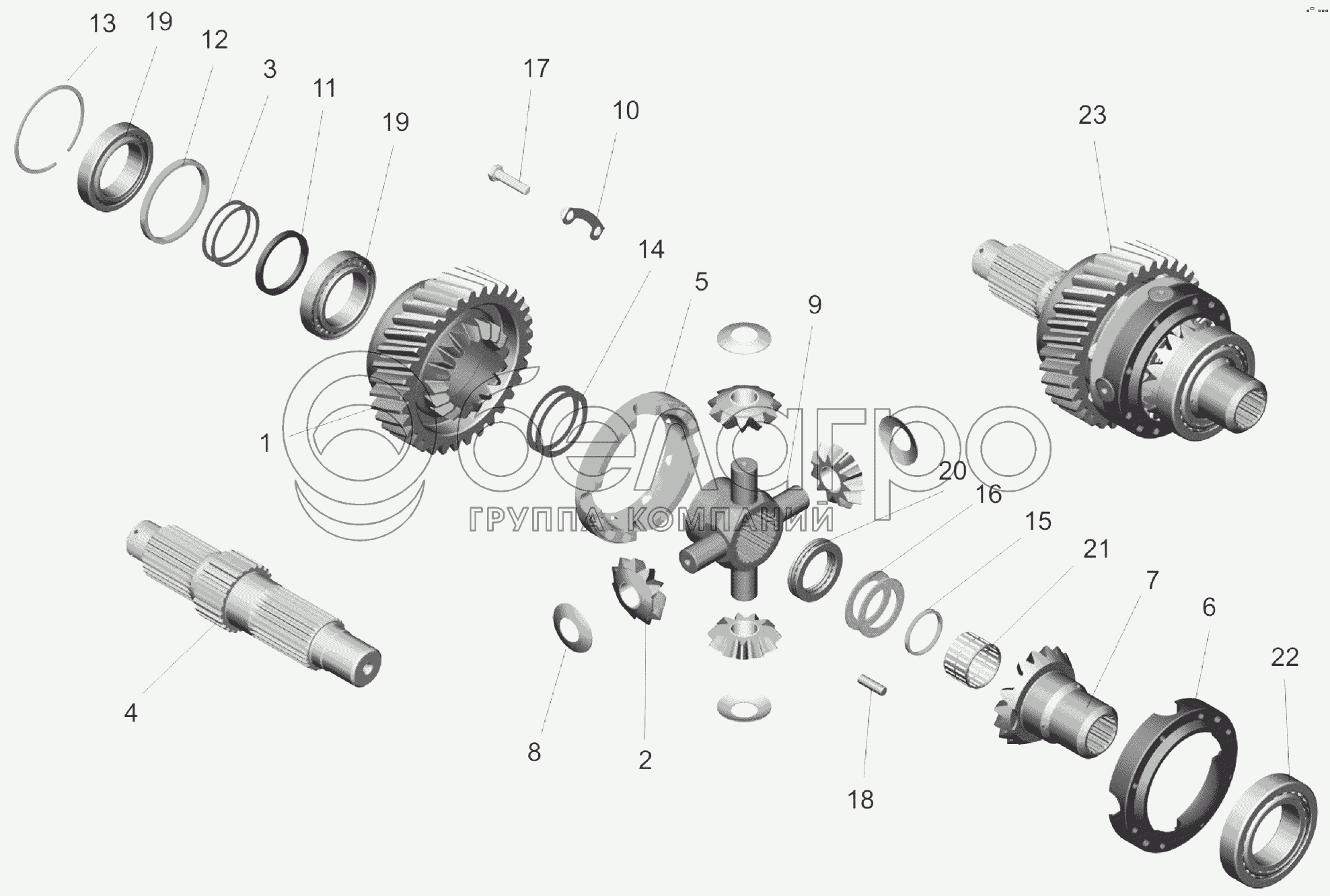 Каталог запасных частей к технике: МАЗ-6303A3, 6303A5. Редуктор среднего моста. Дифференциал межосевой