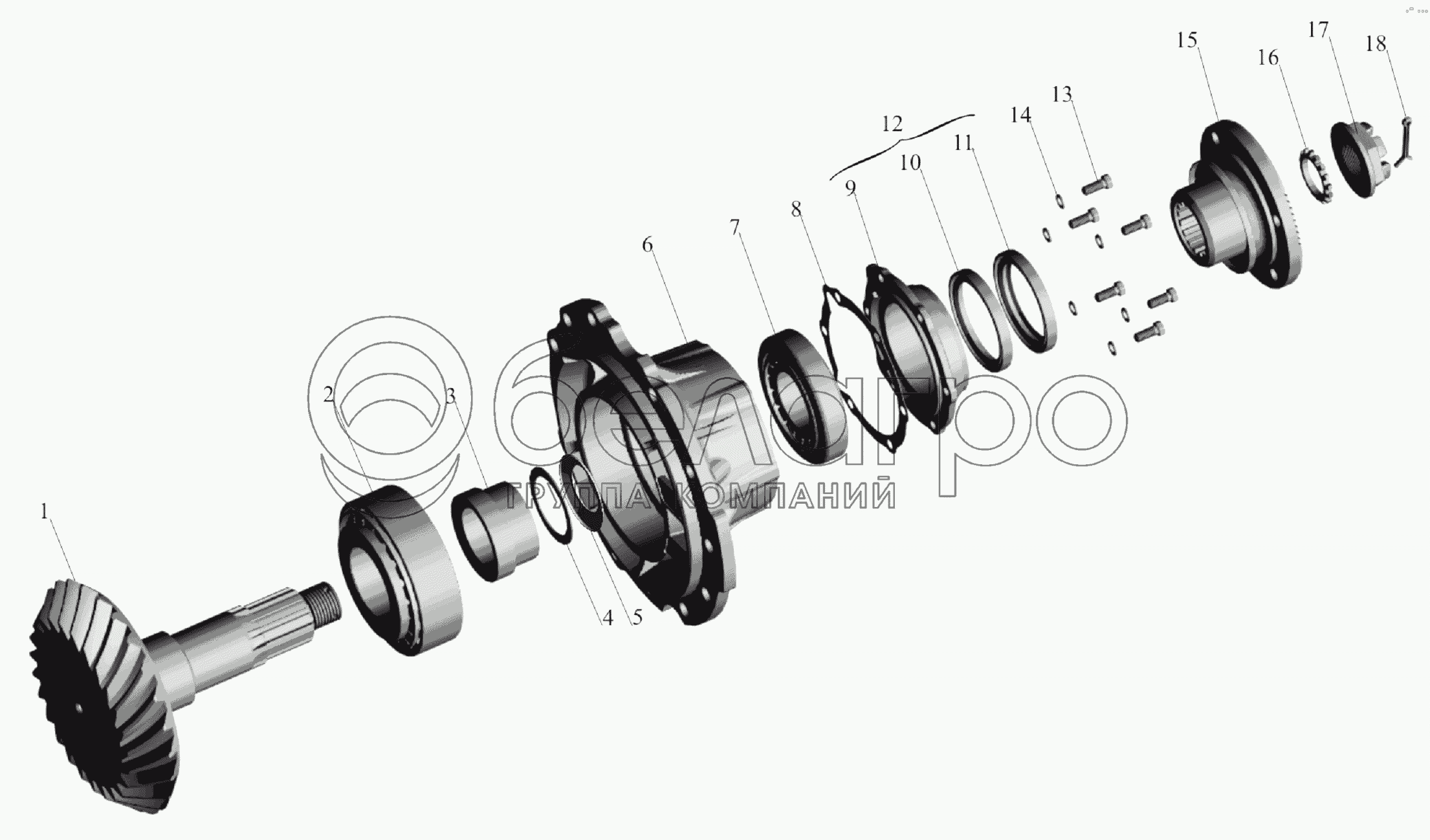 Каталог запасных частей к технике: МАЗ-6303A3, 6303A5. Редуктор заднего моста. Шестерня ведущая
