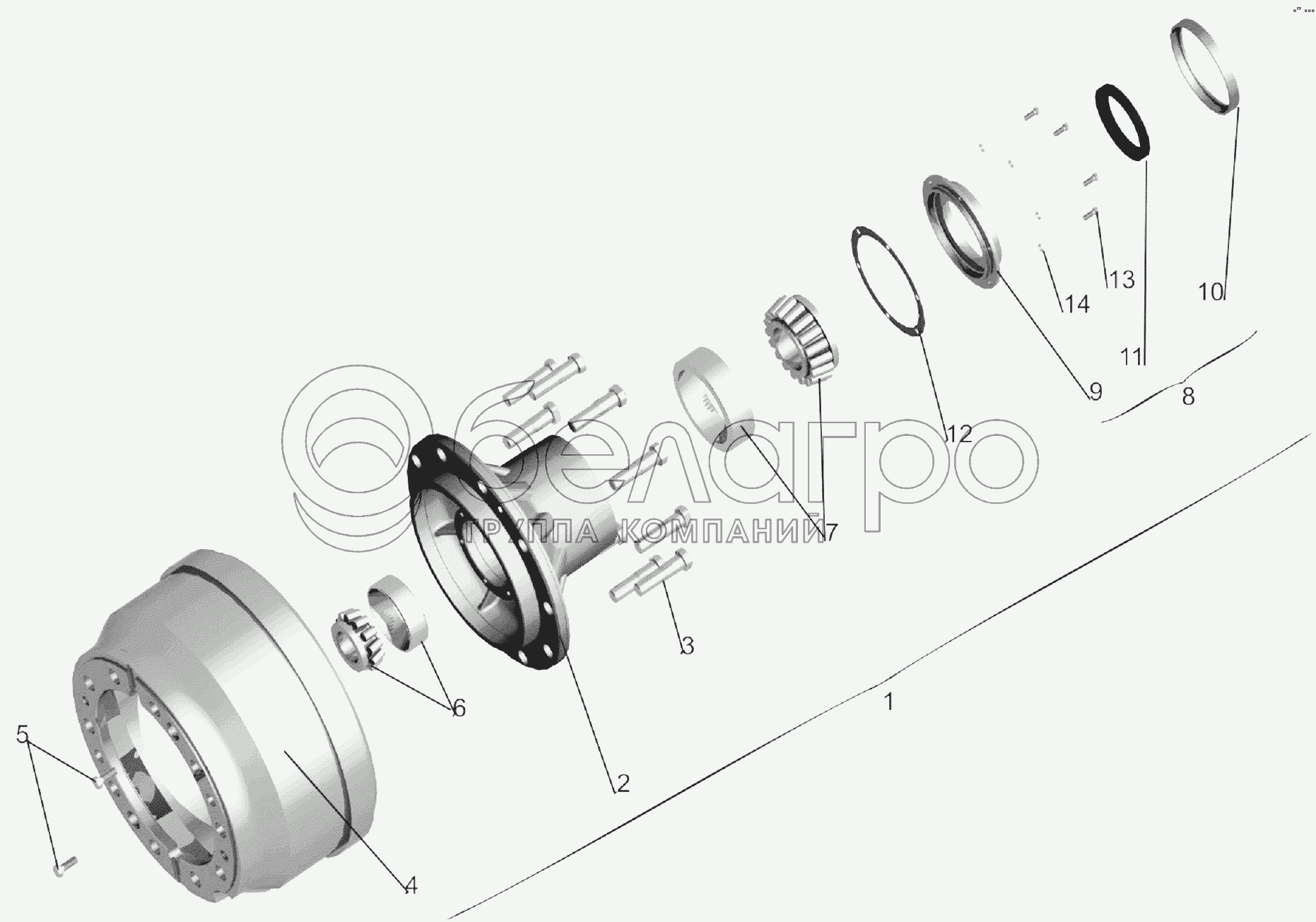 Каталог запасных частей к технике: МАЗ-6303A3, 6303A5. Ступица переднего колеса 54326-3103006