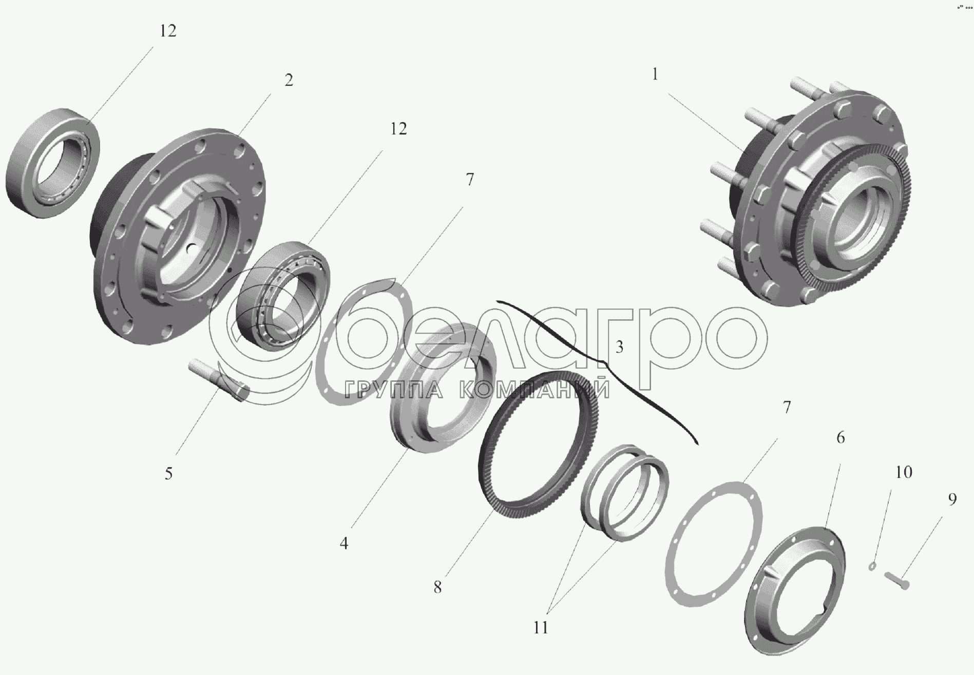 Каталог запасных частей к технике: МАЗ-6303A3, 6303A5. Ступица заднего моста
