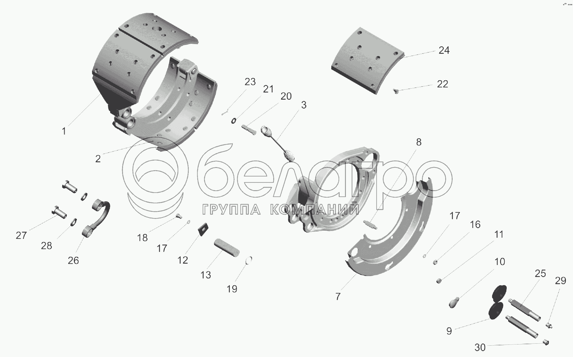 Каталог запасных частей к технике: МАЗ-6303A3, 6303A5. Тормоз колеса среднего моста
