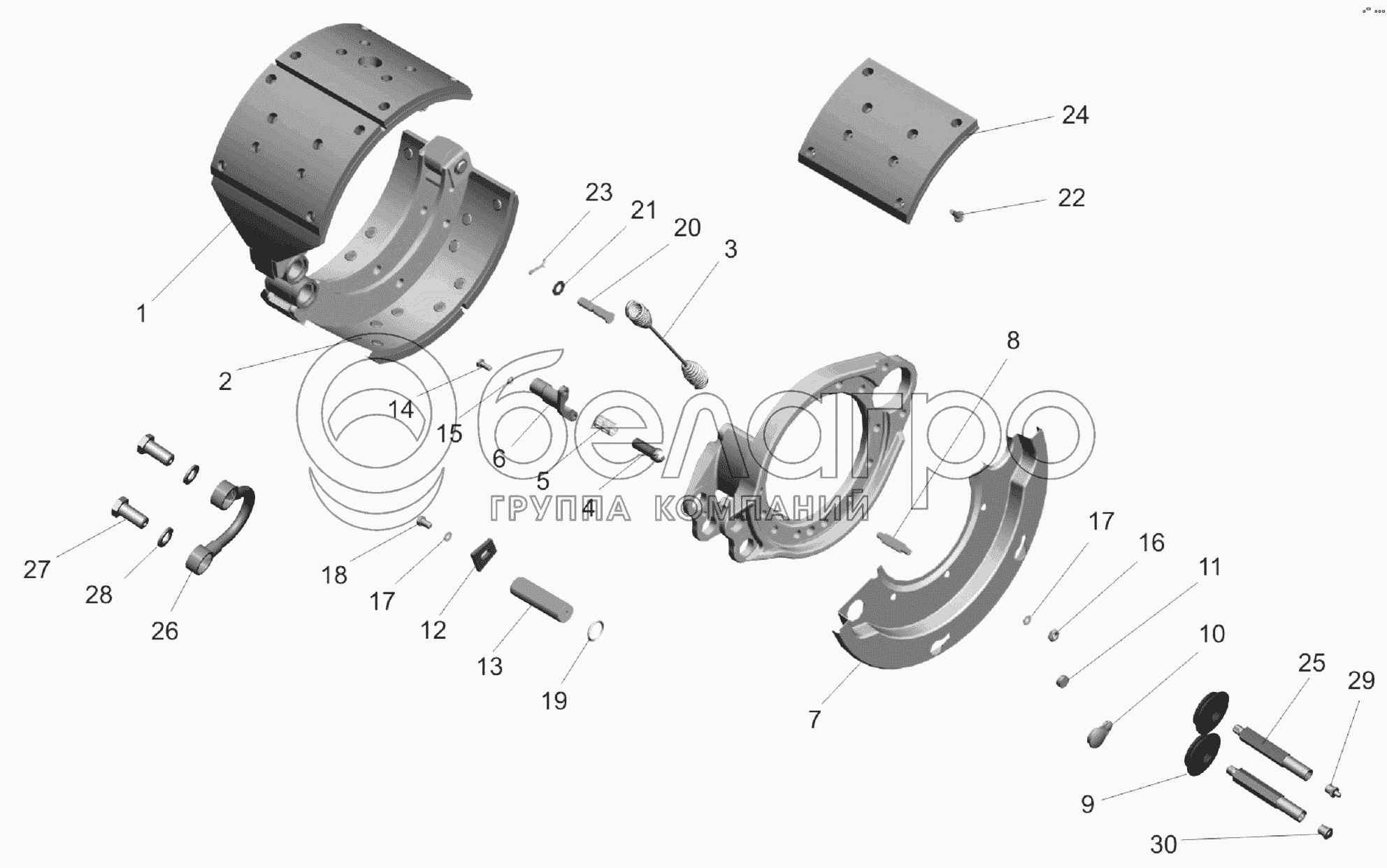 Каталог запасных частей к технике: МАЗ-6303A3, 6303A5. Тормоз колеса заднего моста