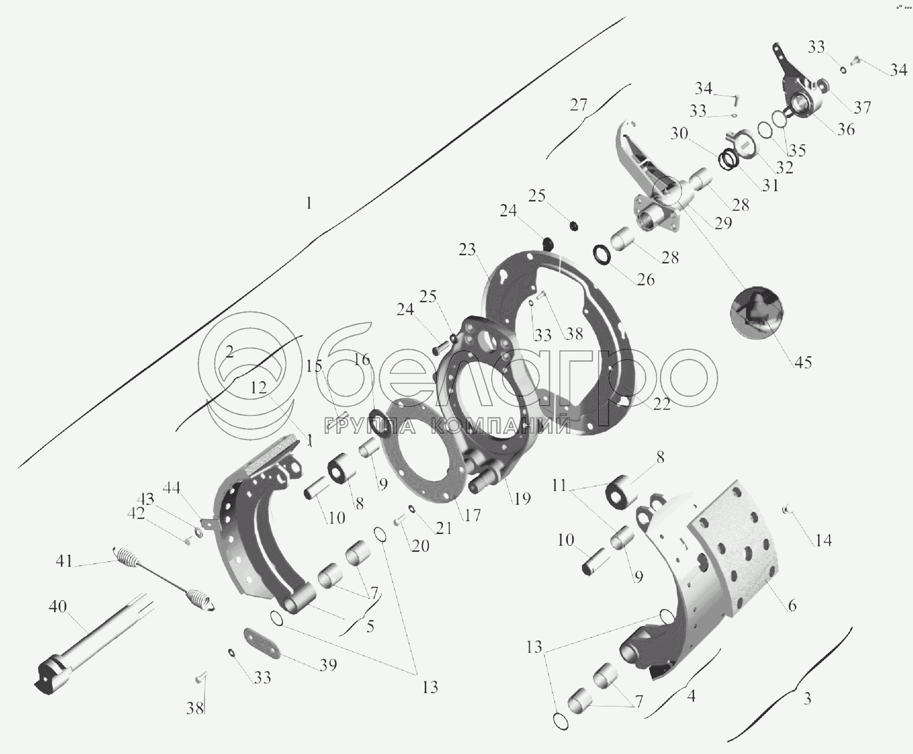 Каталог запасных частей к технике: МАЗ-6303A3, 6303A5. Тормозной механизм передних колес