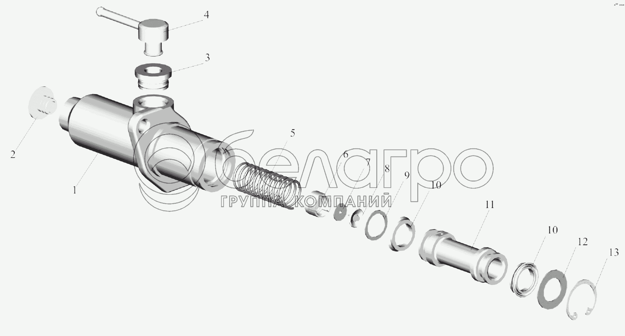 Каталог запасных частей к технике: МАЗ-6303A3, 6303A5. Цилиндр подпедальный 6430-1602510
