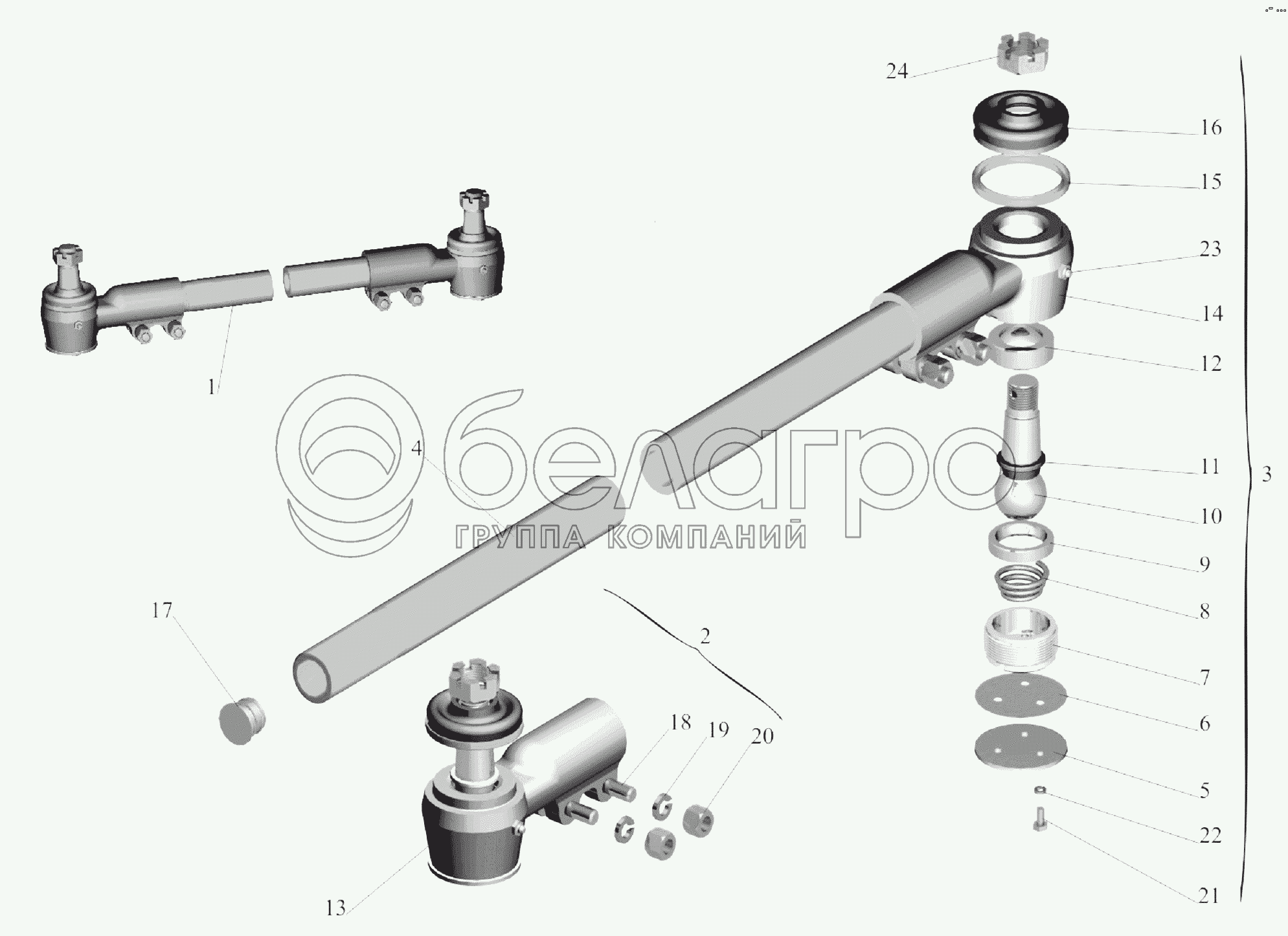 Каталог запасных частей к технике: МАЗ-6303A3, 6303A5. Тяга поперечная рулевая 64221-3003052-10
