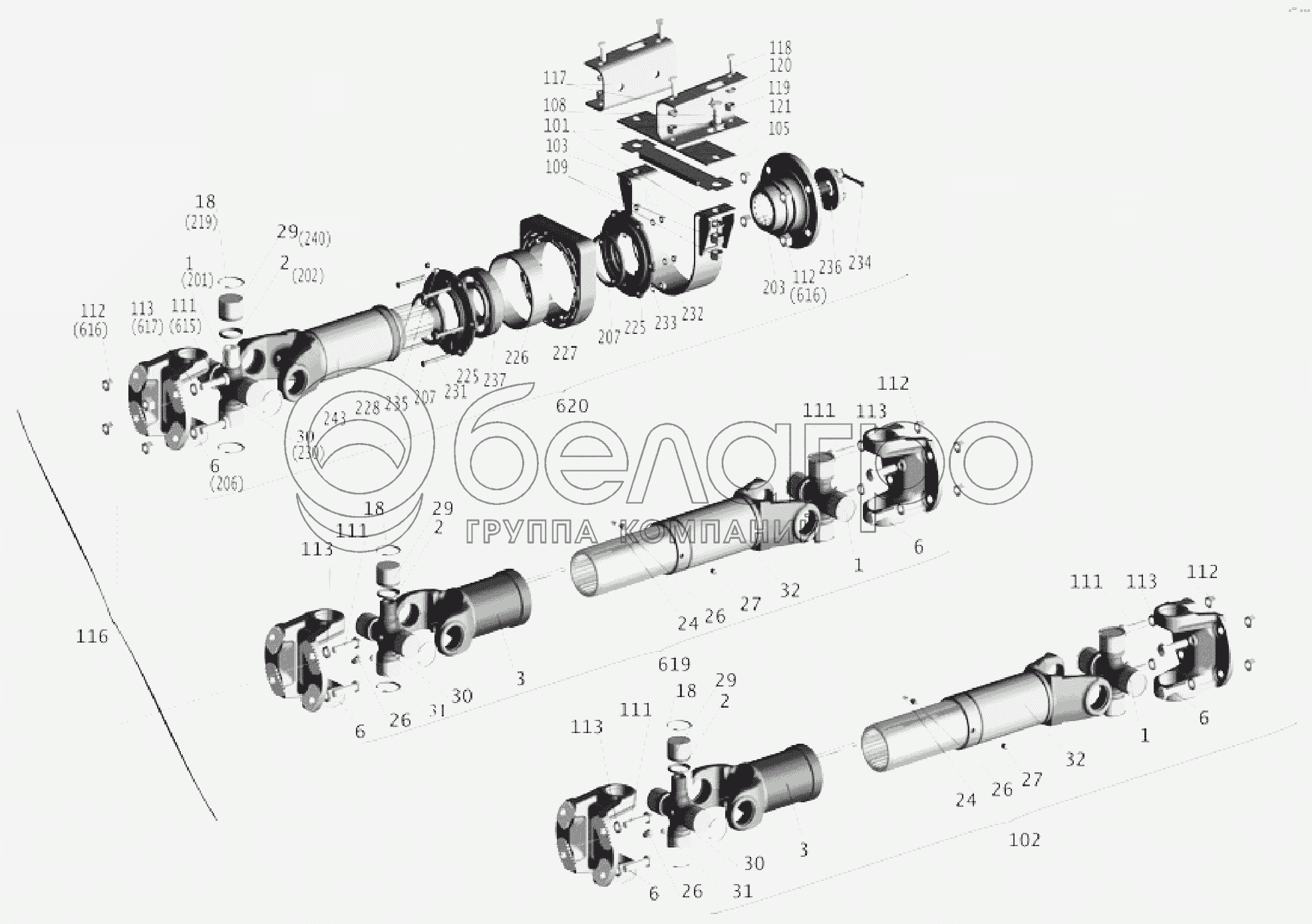 Каталог запасных частей к технике: МАЗ-6303A3, 6303A5. Установка карданной передачи