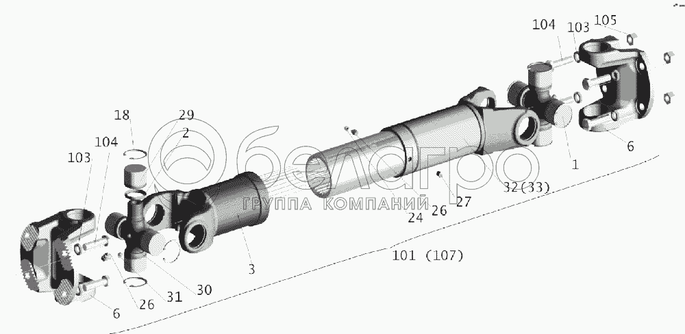 Каталог запасных частей к технике: МАЗ-6303A3, 6303A5. Установка карданных валов