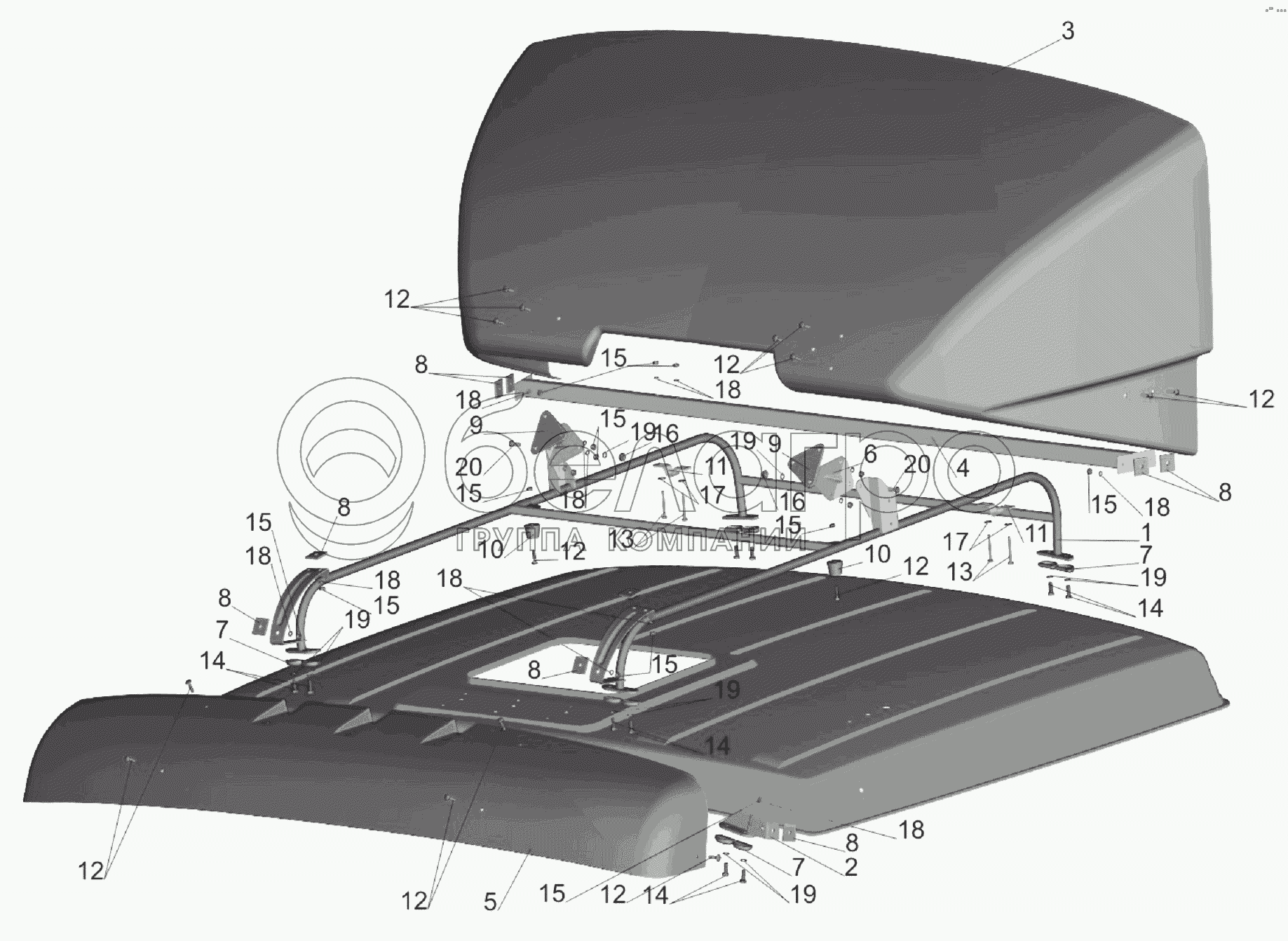 Каталог запасных частей к технике: МАЗ-6303A3, 6303A5. Установка обтекателей