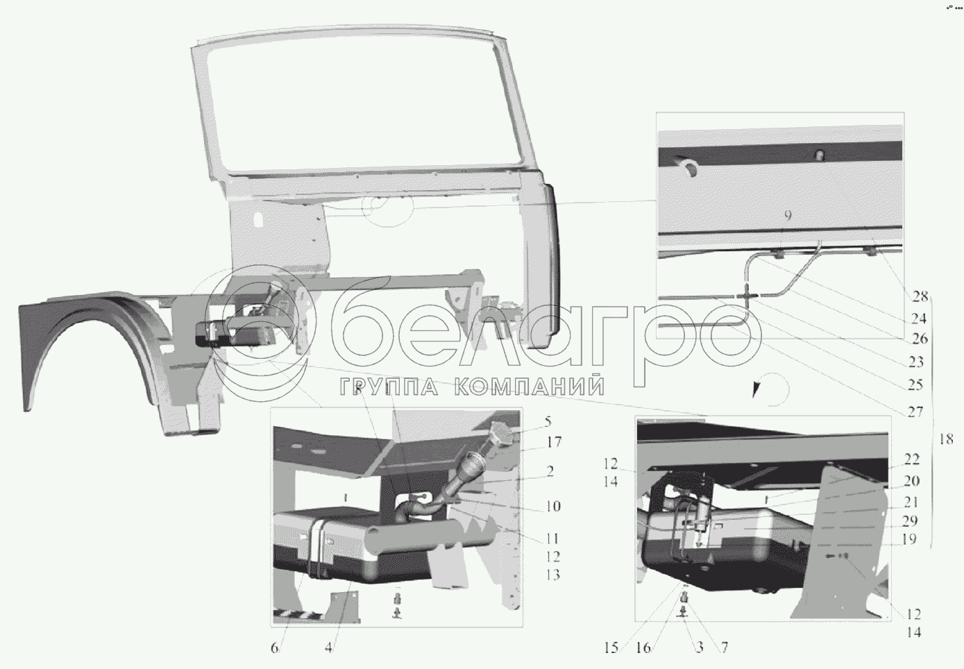 Каталог запасных частей к технике: МАЗ-6303A3, 6303A5. Установка омывателя