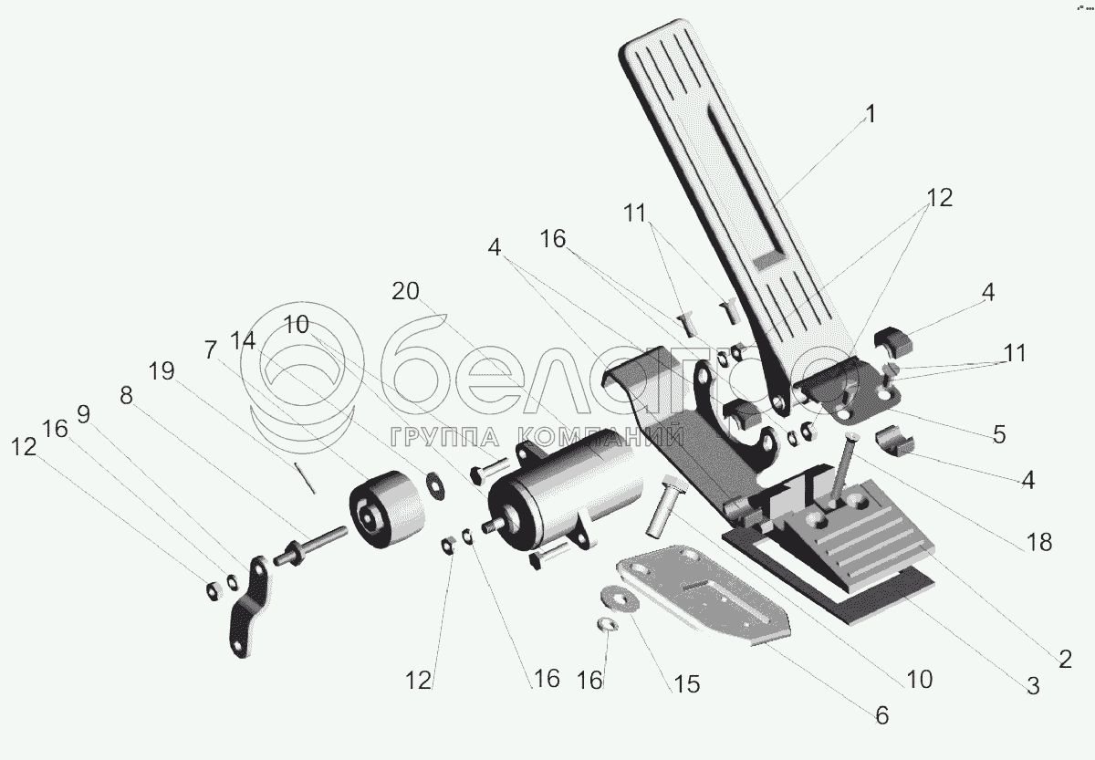 Каталог запасных частей к технике: МАЗ-6303A3, 6303A5. Установка педали управления двигателем 642268-1108002