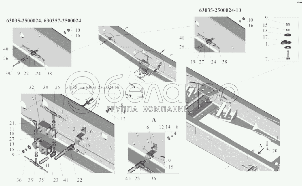 Каталог запасных частей к технике: МАЗ-6303A3, 6303A5. Установка привода управления блокировкой