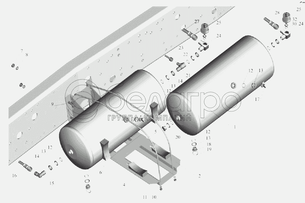 Каталог запасных частей к технике: МАЗ-6303A3, 6303A5. Установка ресиверов 53372-3513004