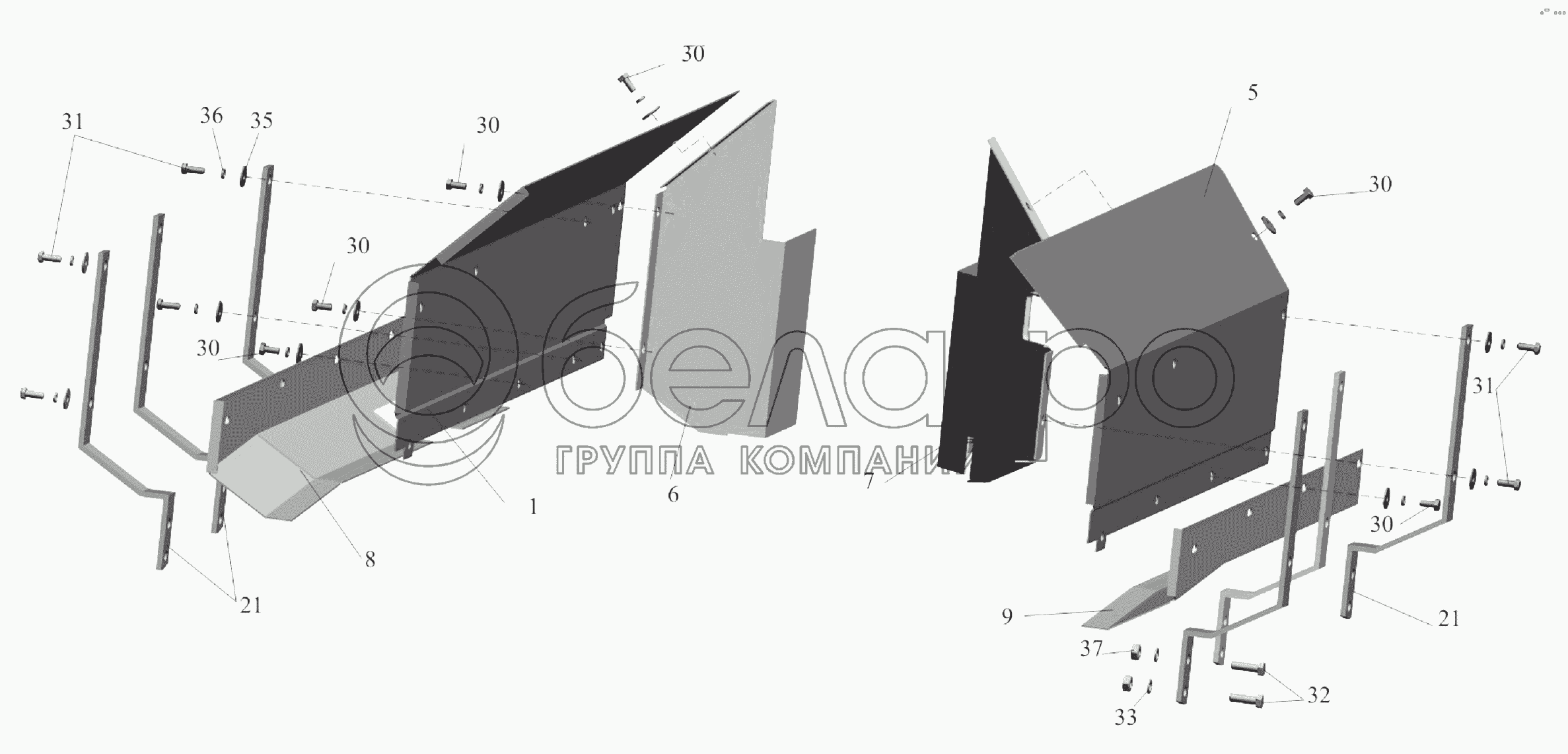 Каталог запасных частей к технике: МАЗ-6303A3, 6303A5. Установка шумоизоляционных экранов 642205-1061003