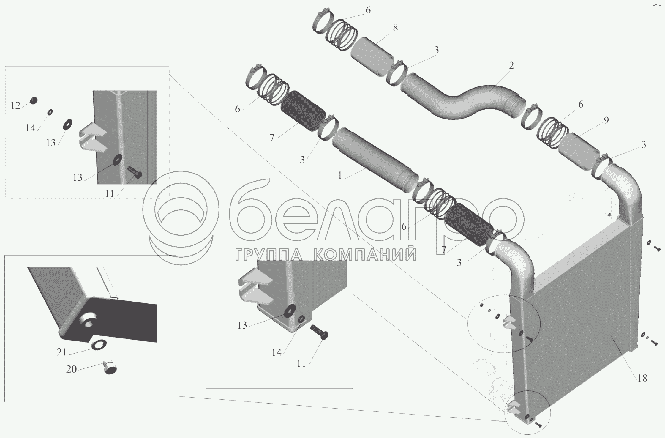 Каталог запасных частей к технике: МАЗ-6303A3, 6303A5. Установка системы охлаждения воздуха 5432А5-1300040
