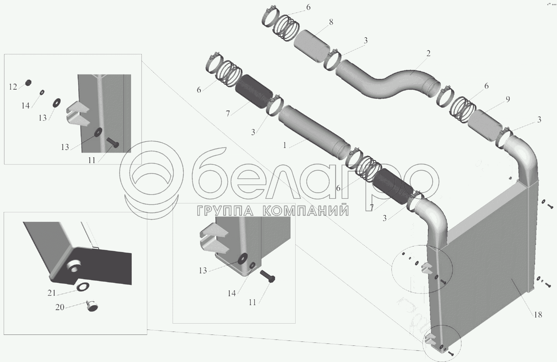 Каталог запасных частей к технике: МАЗ-6303A3, 6303A5. Установка системы охлаждения воздуха 5551А2-1300040