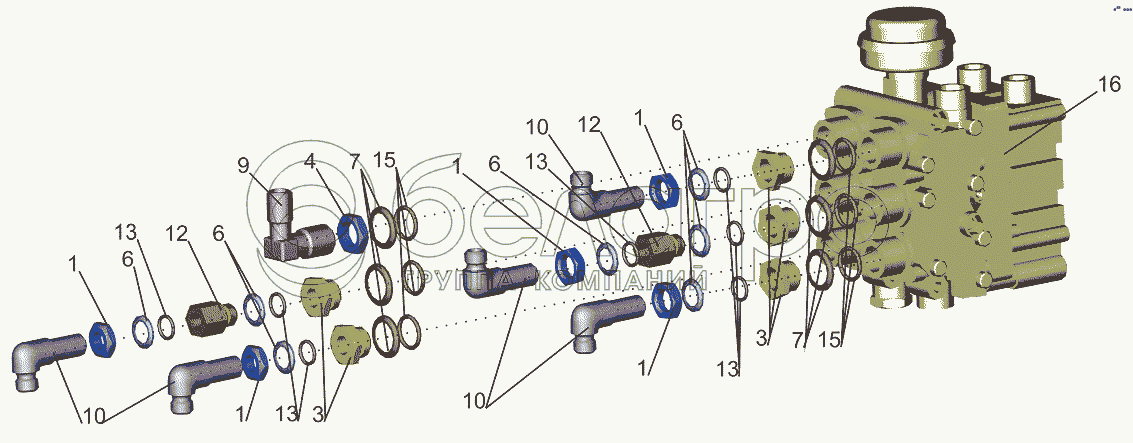 Каталог запасных частей к технике: МАЗ-631019. Блок электропневмоклапанов ECAS с угольниками 631019-2926006