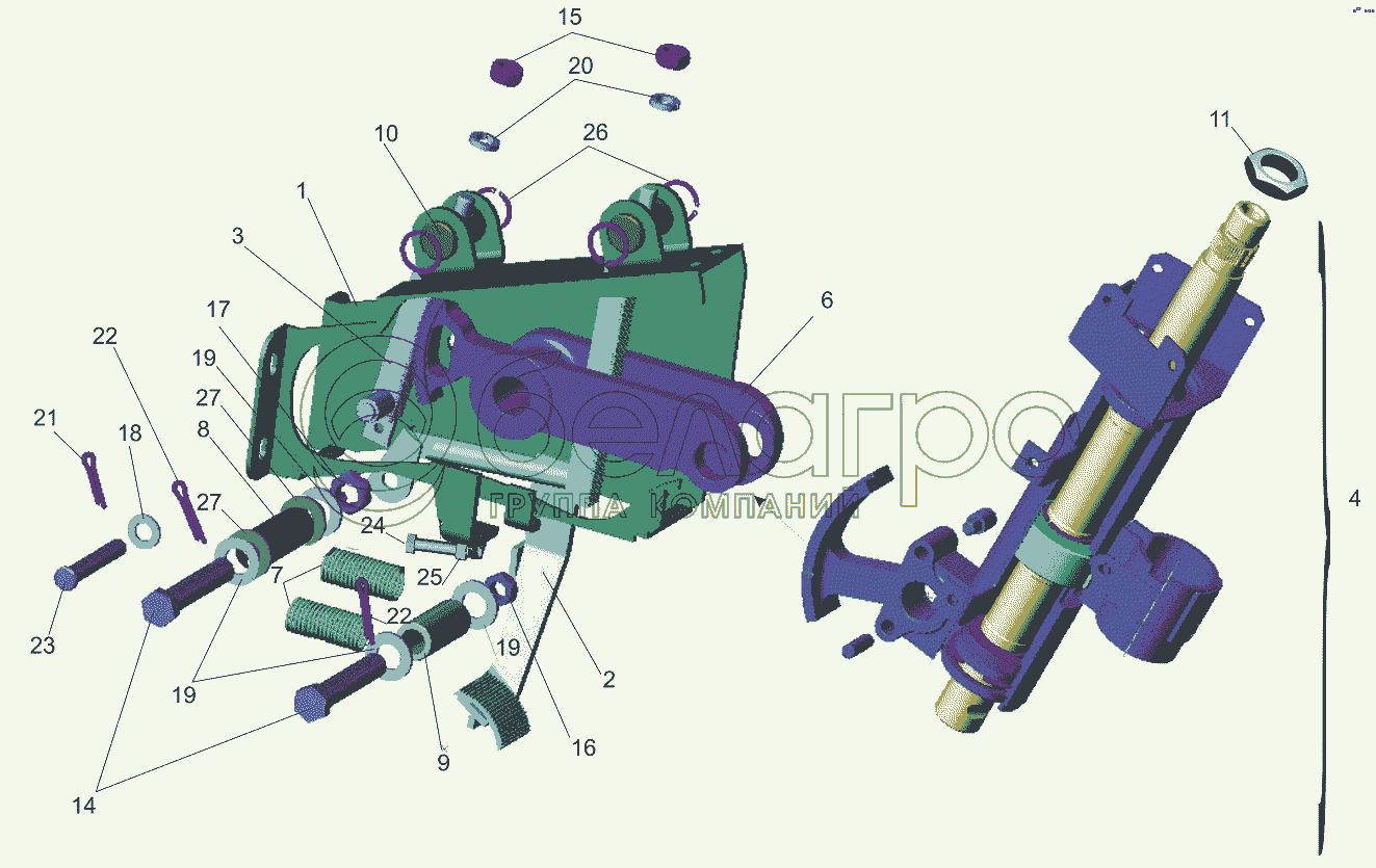 Каталог запасных частей к технике: МАЗ-631019. Кронштейн с колонкой 5440-3403008