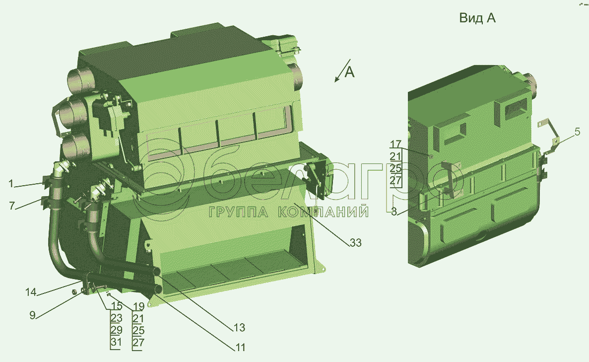 Каталог запасных частей к технике: МАЗ-631019. Отопитель 631019-8101010-010