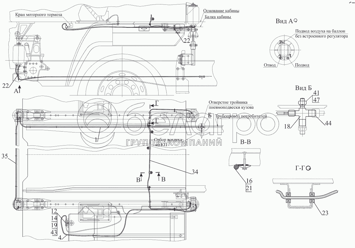 Каталог запасных частей к технике: МАЗ-631019. Пневмопитание подвески кабины 643019-5001930